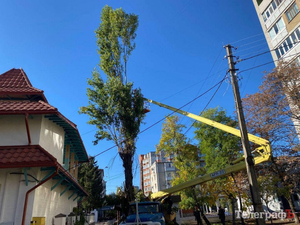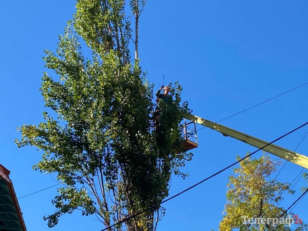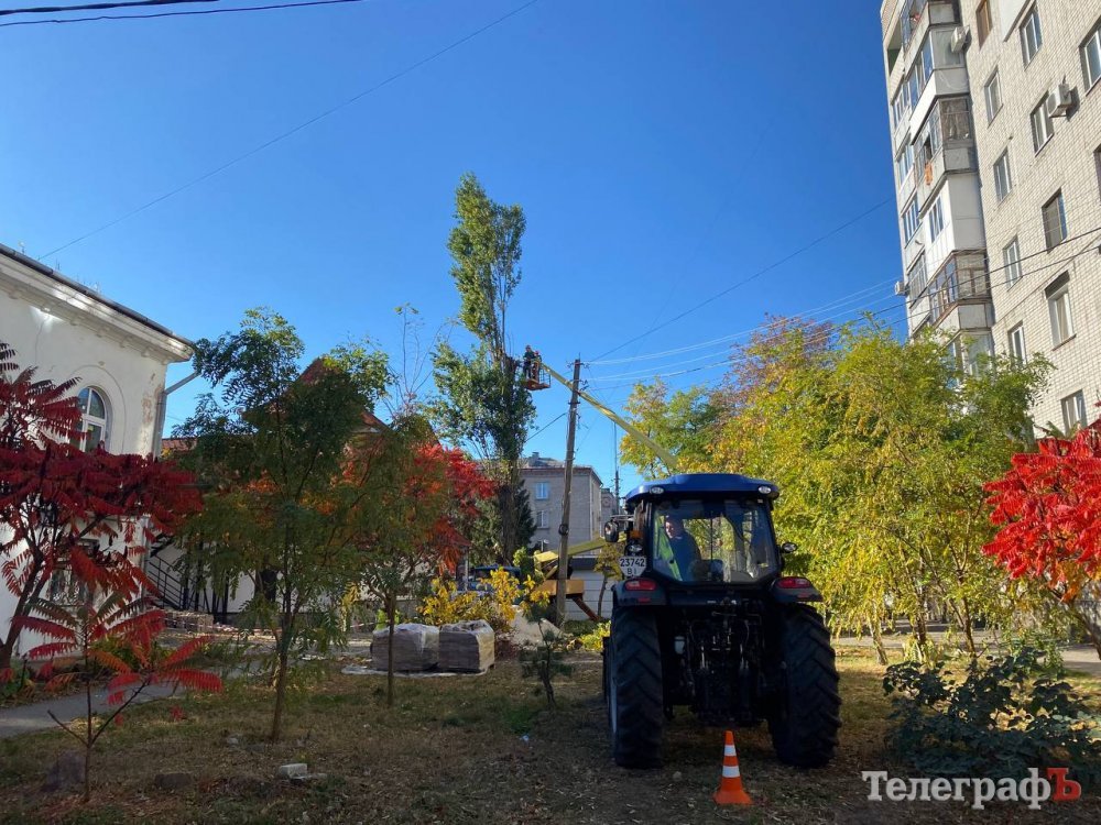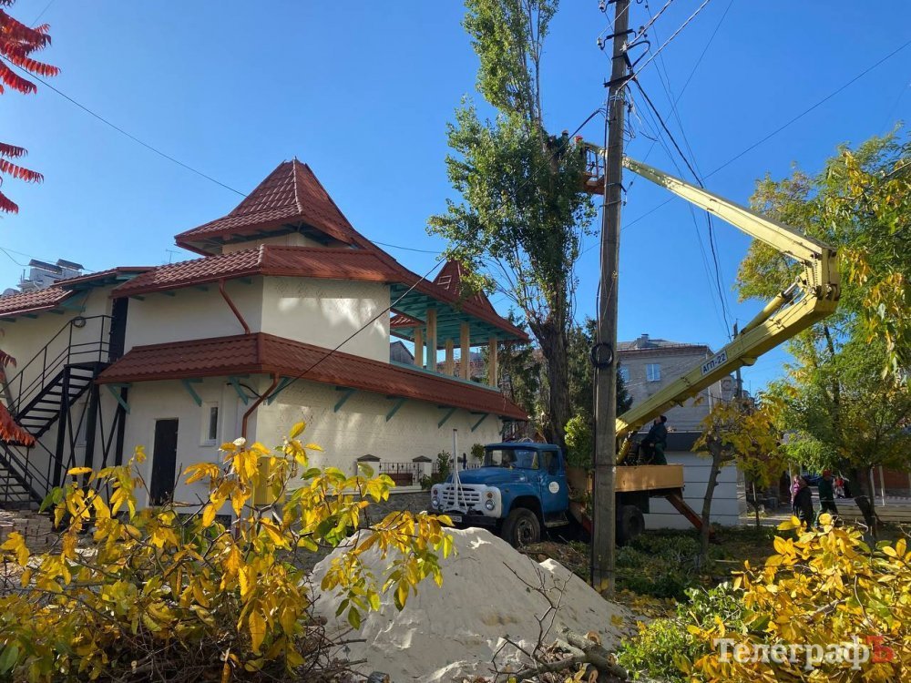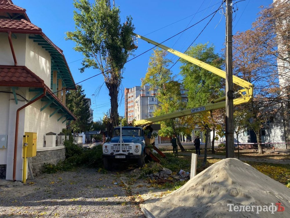 23 жовтня біля зупинки громадського транспорту «Центр» працівники КП «Благоустрій-Кременчук» кронували аварійне дерево. Про це журналістам Т повідомили робітники підприємства на місці роботи.