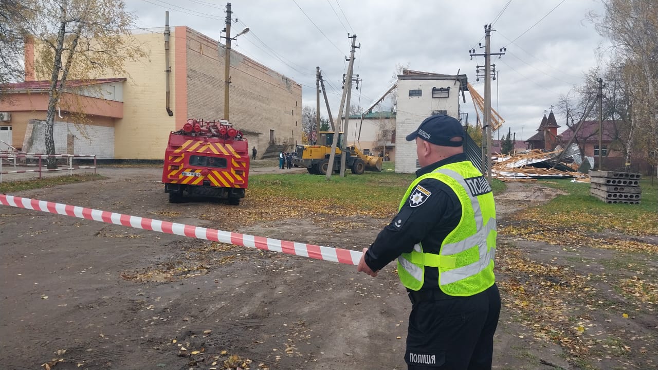 Поліція Полтавської області повідомила, що у селищі Котельва сильний порив вітру повністю розкрив дах кінотеатру. Ніхто не постраждав. Наразі у Котельві усувають наслідки стихії.