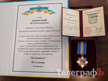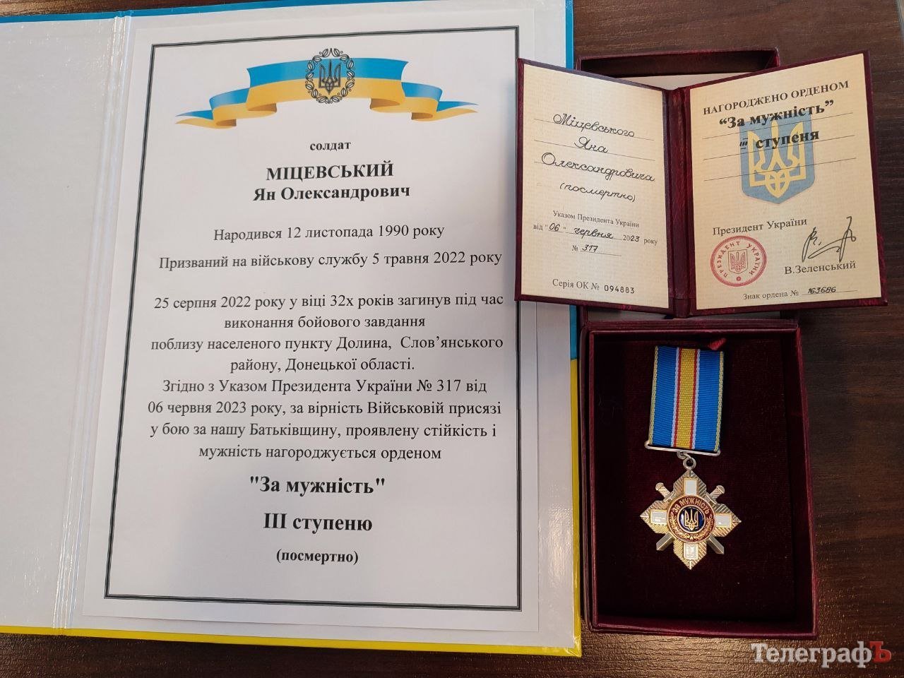 Першим державну нагороду вручили родині загиблого солдата Міцевського Яна Олександровича. Указом Президента України №317 від 6 червня 2023 року за особисту мужність, проявлену стійкість та героїзм, вірність Військовій присязі,