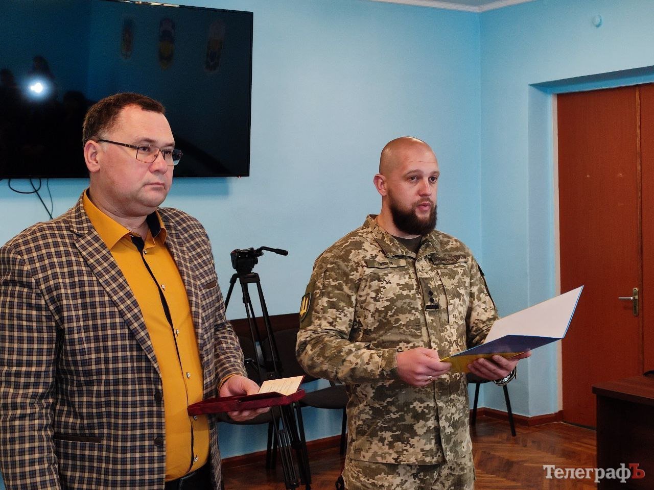 Нагороди від імені Президента України передали заступник начальника Кременчуцької районної військової адміністрації Артем Даценко та т.в.о. начальника Кременчуцького районного ТЦК та СП (колишній військкомат – ред.) Мирослав Волков.