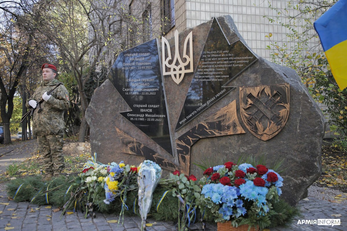 У Києві відкрили меморіал трьом військовослужбовцям реактивної артилерійської бригади, про це повідомляє видання АрміяІнформ. Пам’ятний знак встановили неподалік того місця, де під час оборони столиці 22 березня 2022 року артилеристи загинули внаслідок ракетного удару.