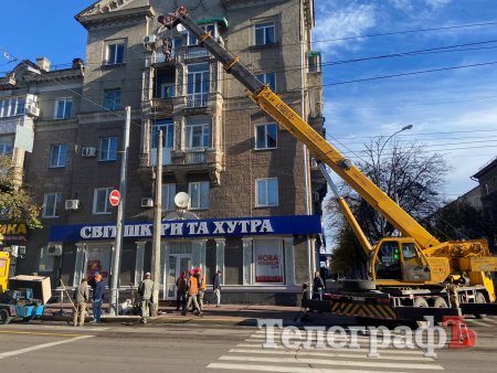 Зранку 6 листопада на перехресті Соборної та Небесної Сотні у Кременчуці комунальники встановлюють новий стовп. Через це рух по Небесної Сотні ускладнений, адже техніка стоїть на смузі для громадського транспорту і той змушений виїжджати на зустрічну смугу.