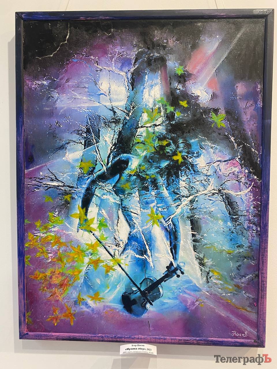 На виставці роботи автора розділені на кілька блоків, присвячених музиці, війні, 100-річчю лісгоспу. Ігор Носов зазначає, що у його колекції є цілі історії у картинах.