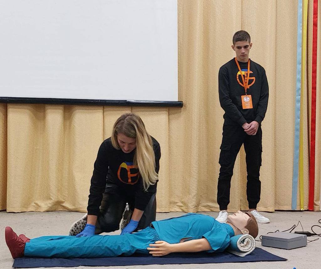 Корисні знання також студенти здобули під час заняття з викладачами кафедри цивільної безпеки, охорони праці, геодезії та землеустрою КрНУ імені Михайла Остроградського Дмитром Рєзніком та Ольгою Ченчевою, яким допомагали студенти Олег Роговенко та Даниїл Плітка. Разом вони провели практичне заняття з основ надання першої домедичної допомоги, а це ті знання які в умовах викликів сьогодення необхідні кожному.