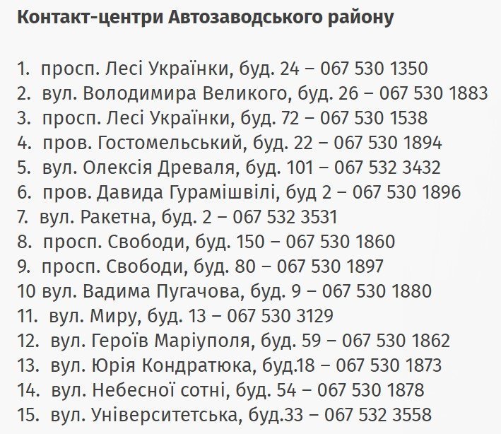 Також для людей похилого віку пільгових категорій та для людей з інвалідністю, які мешкають у віддалених районах міста, працюють соціальні перукарні. Послуга є безкоштовною, скористатися нею можна у приміщеннях контакт-центрів Автозаводського району міста. Виїзні бригади соціальних перукарів працюють щосереди. Отримати детальну інформацію можна за номерами телефонів на зображенні нижче.