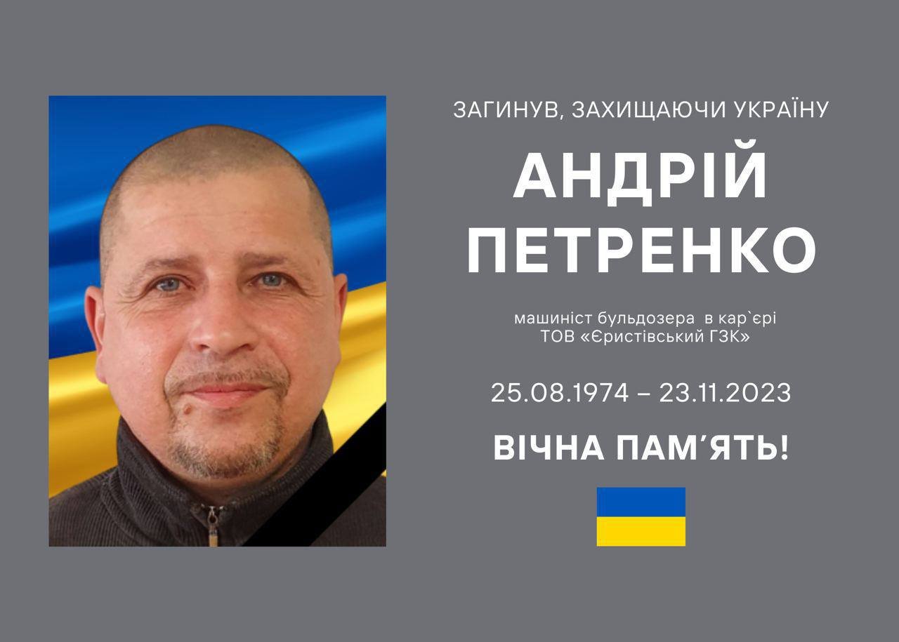 На війні загинув 49-річний працівник компанії Ferrexpo Андрій Петренко. Про це повідомили у пресслужбі компанії.