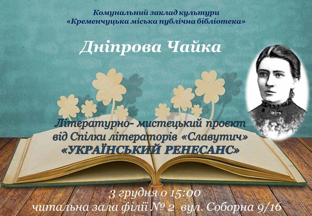 Філія №2 Кременчуцької міської публічної бібліотеки запрошує усіх охочих на літературно-мистецький проєкт «Український Ренесанс» від спілки літераторів «Славутич». Про це повідомила пресслужба мерії.