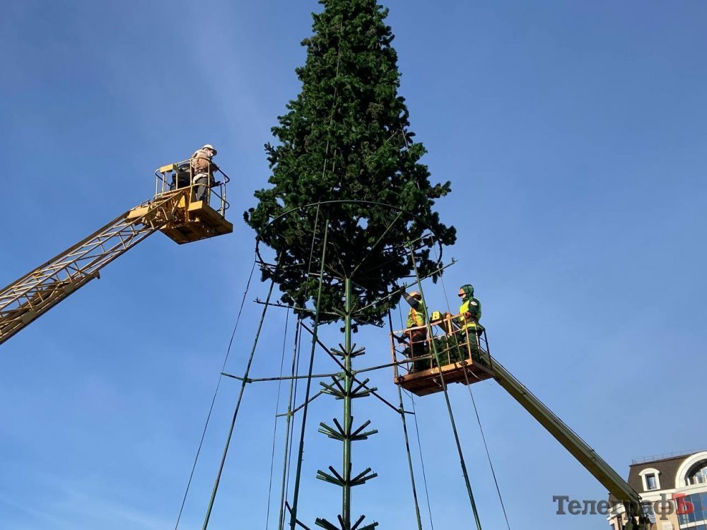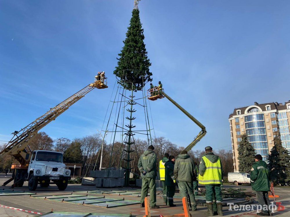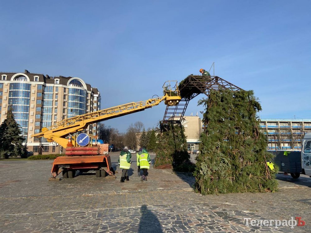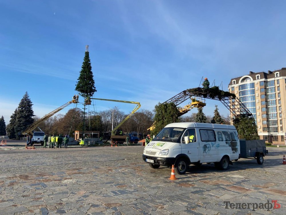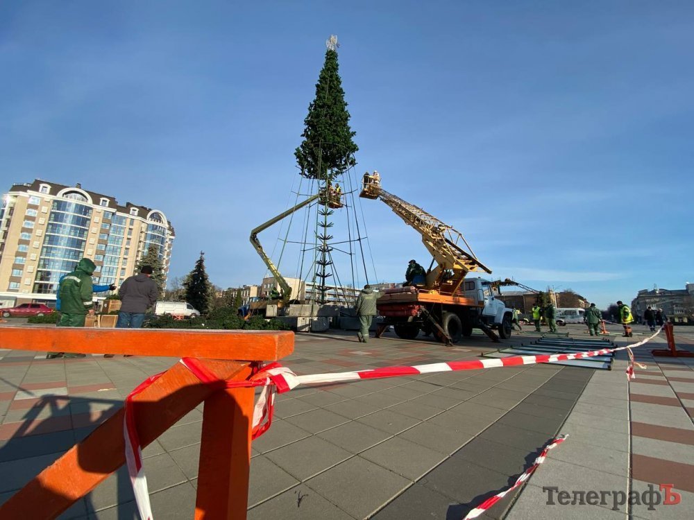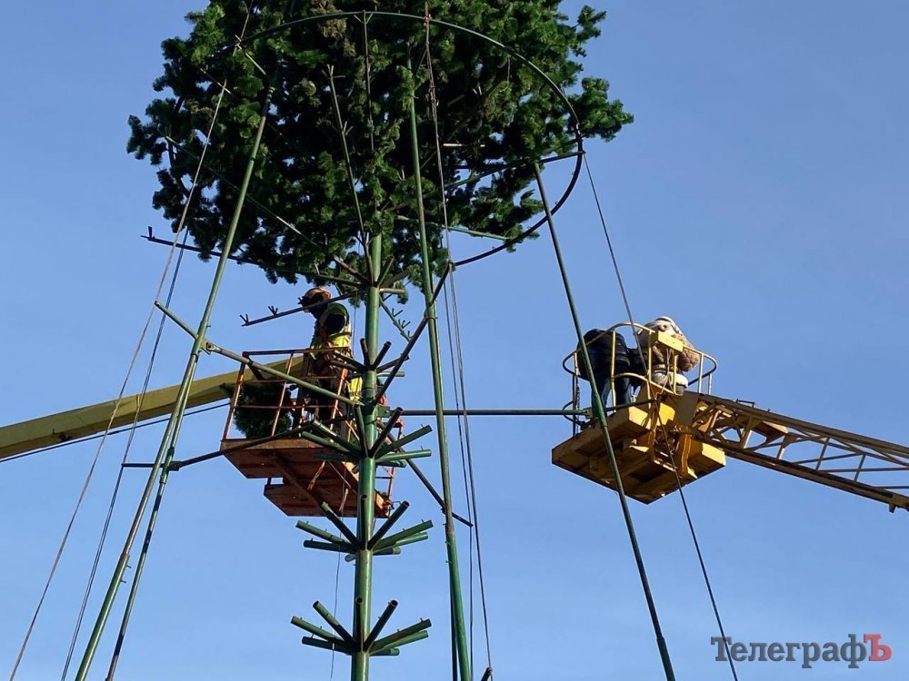 Центр Кременчука прикрашають до Нового року. Світлини того, як комунальники потроху вбирають місто у святкові шати, зробив наш фотокореспондент Артем Коваленко.