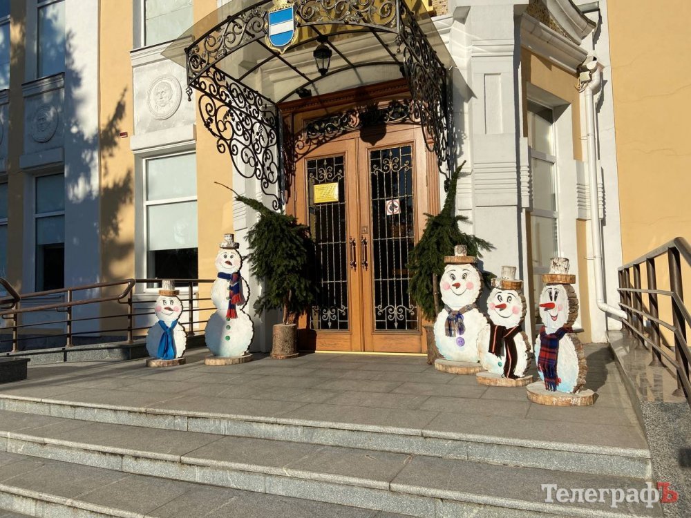 Також біля входу у Кременчуцький краєзнавчий музей «оселилося» кілька сніговичків.