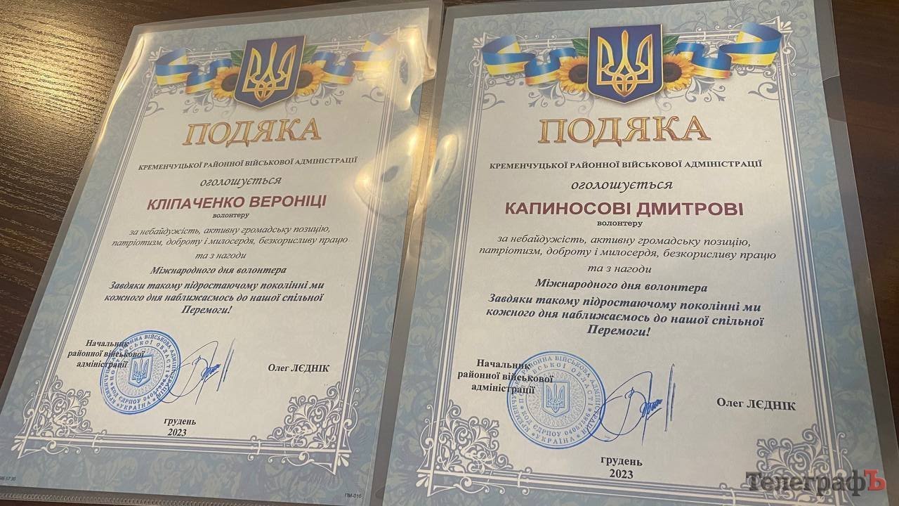 Сьогодні, 5 грудня, у стінах Кременчуцької військової адміністрації начальник КРВА Олег Лєднік відзначив учнів 7 класу ліцею №25.