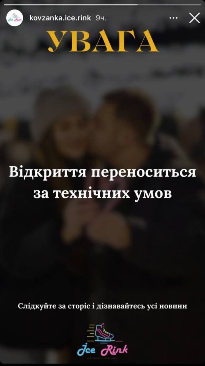 Сьогодні, 6 грудня, планувалося відкриття ковзанки на центральній площі Кременчука. Проте на сторінці ковзанки в інстаграмі повідомили, що відкриття переноситься через технічні умови.
