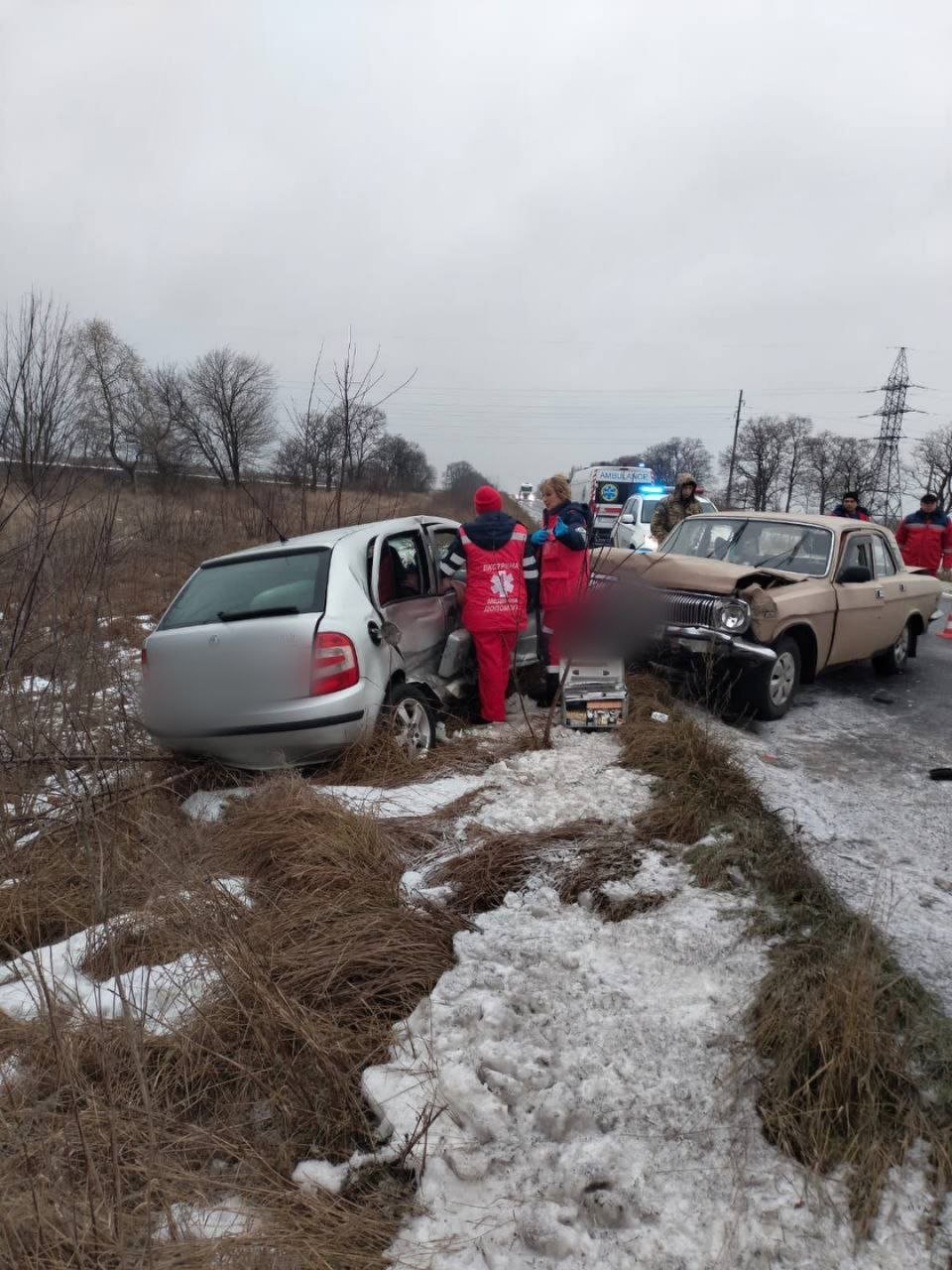 ДТП сталася поблизу села Яроші. На слизькій ділянці дороги зіткнулися автомобілі Skoda та ГАЗ «Волга».