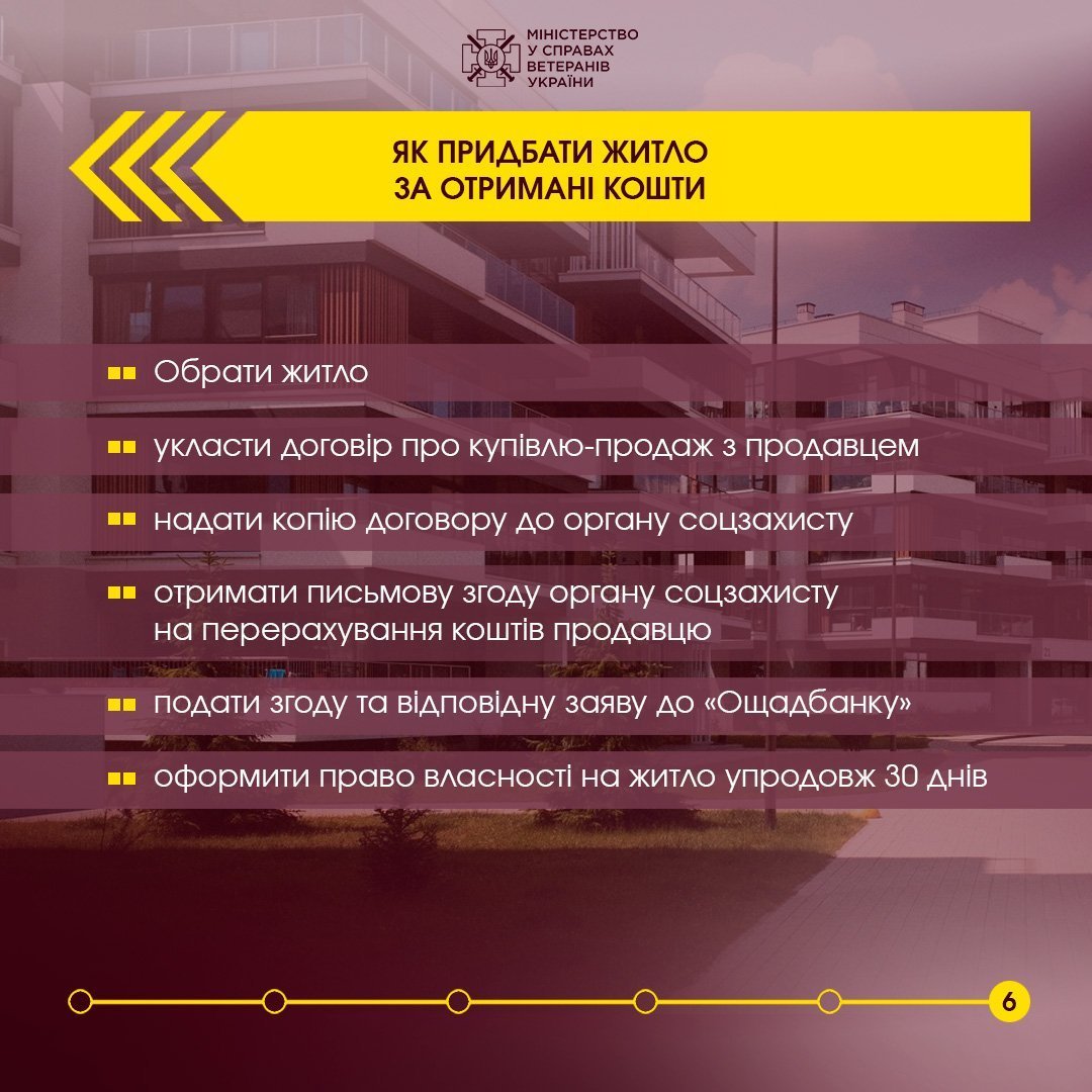 - Придбати житло упродовж року (шести місяців після припинення воєнного стану).