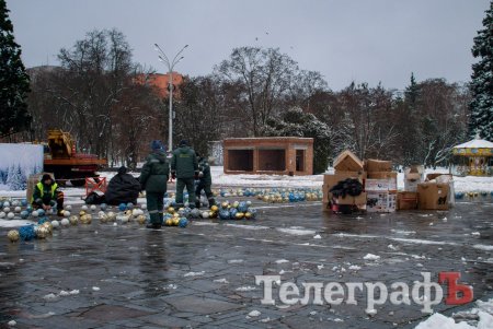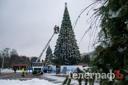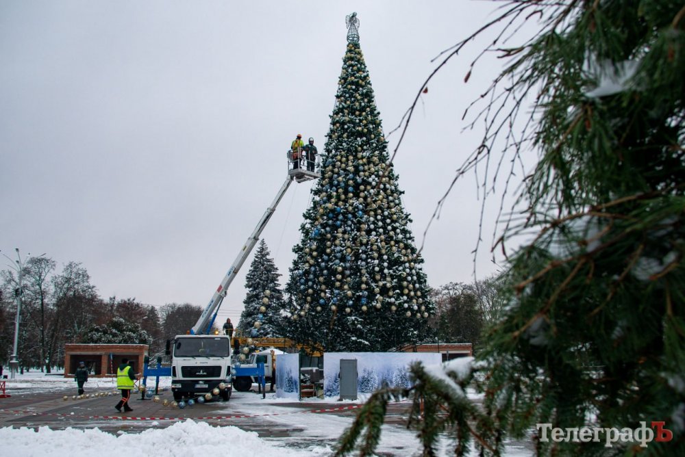 У Кременчуці закінчують прикрашати головну ялинку на площі Перемоги. Світлини, як це відбувається, зробив наш фотокореспондент.