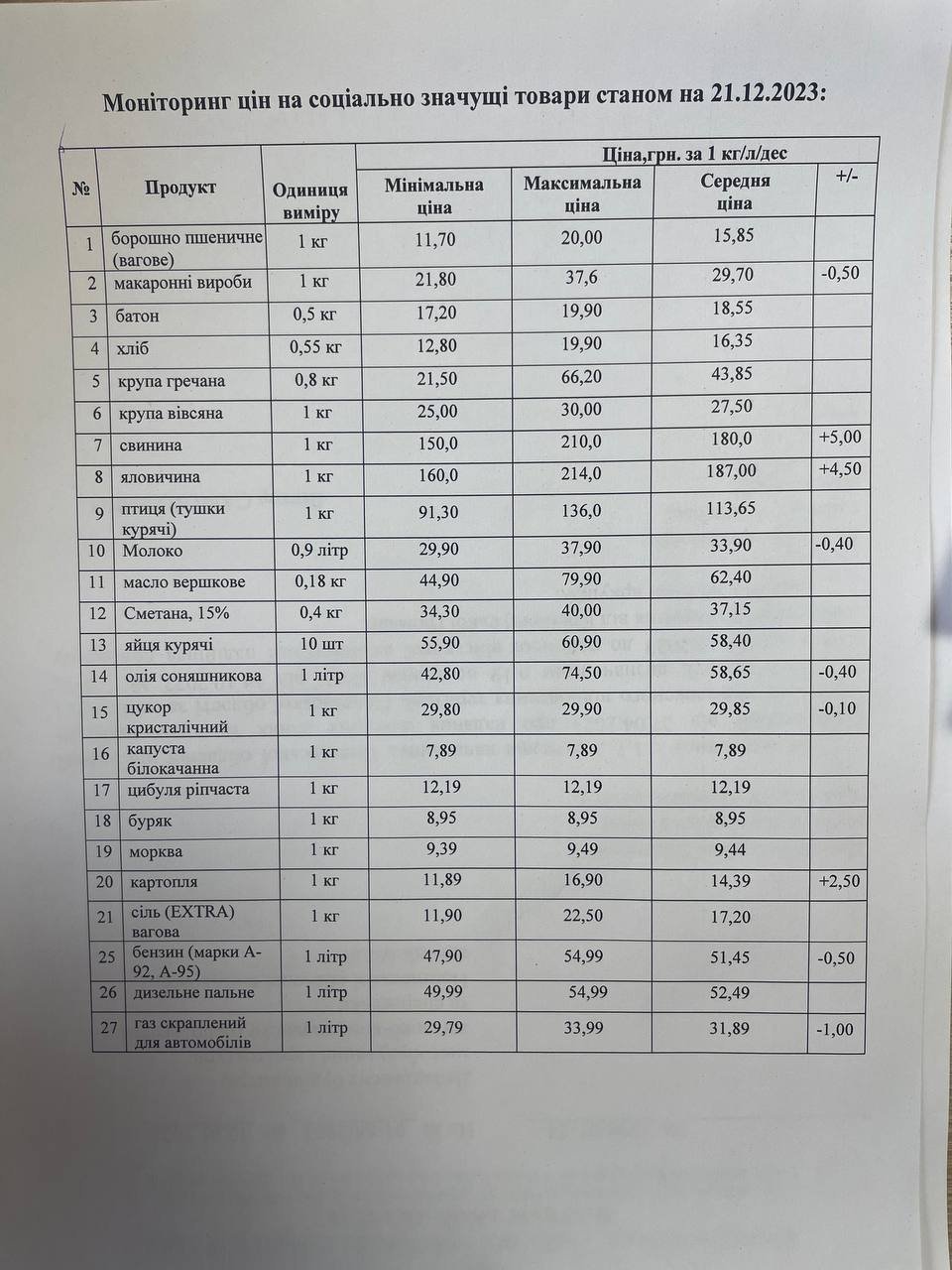 Згідно з моніторингом цін від Держпродспоживслужби, станом на 21 грудня подорожчали: