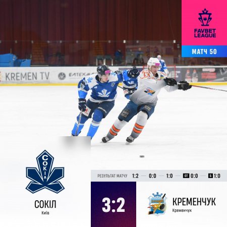 21 грудня хокейний клуб «Кременчук» вчетверте у сезоні програв хокейному клубу «Сокіл». Кременчужани поступилися киянам в київському Палаці спорту з рахунком 3:2 (по булітам). Про це повідомили у Всеукраїнській громадській організації «Федерація хокею України».