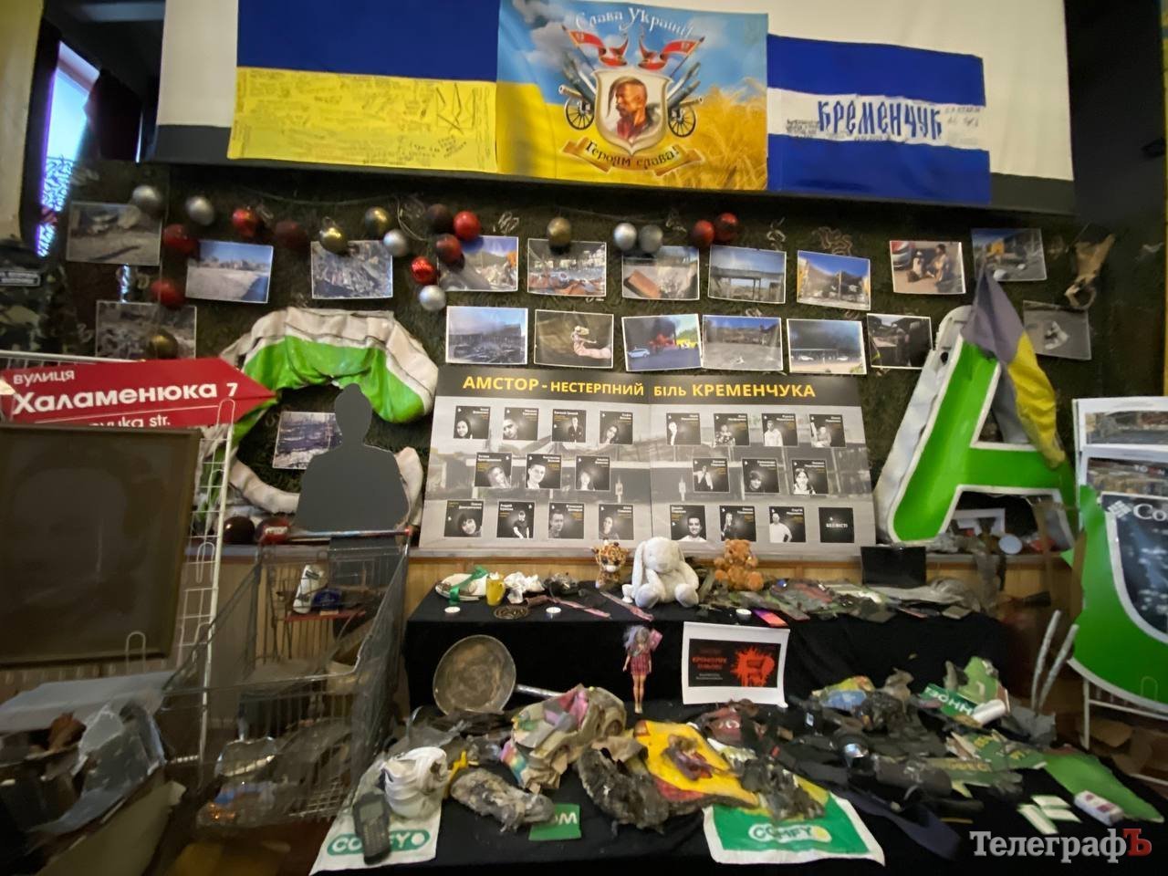 Починається він зі зруйнованого «Амстора» — тут зібрані речі, які Володимир Поляков та його помічники знайшли на попелищі супермаркету та які можна побачити лише тут, у музеї.