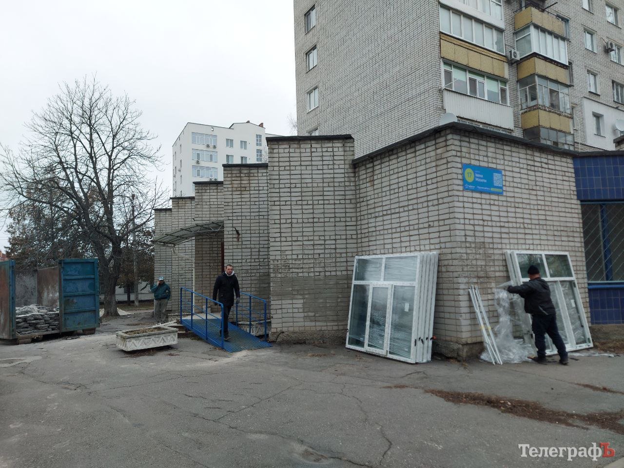«Кременчуцький Телеграф» зробив світлину (див. вище), як у «ветеранському хабі» міняють старі вікна на нові, металопластикові.