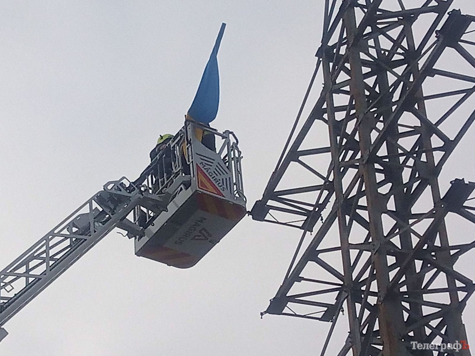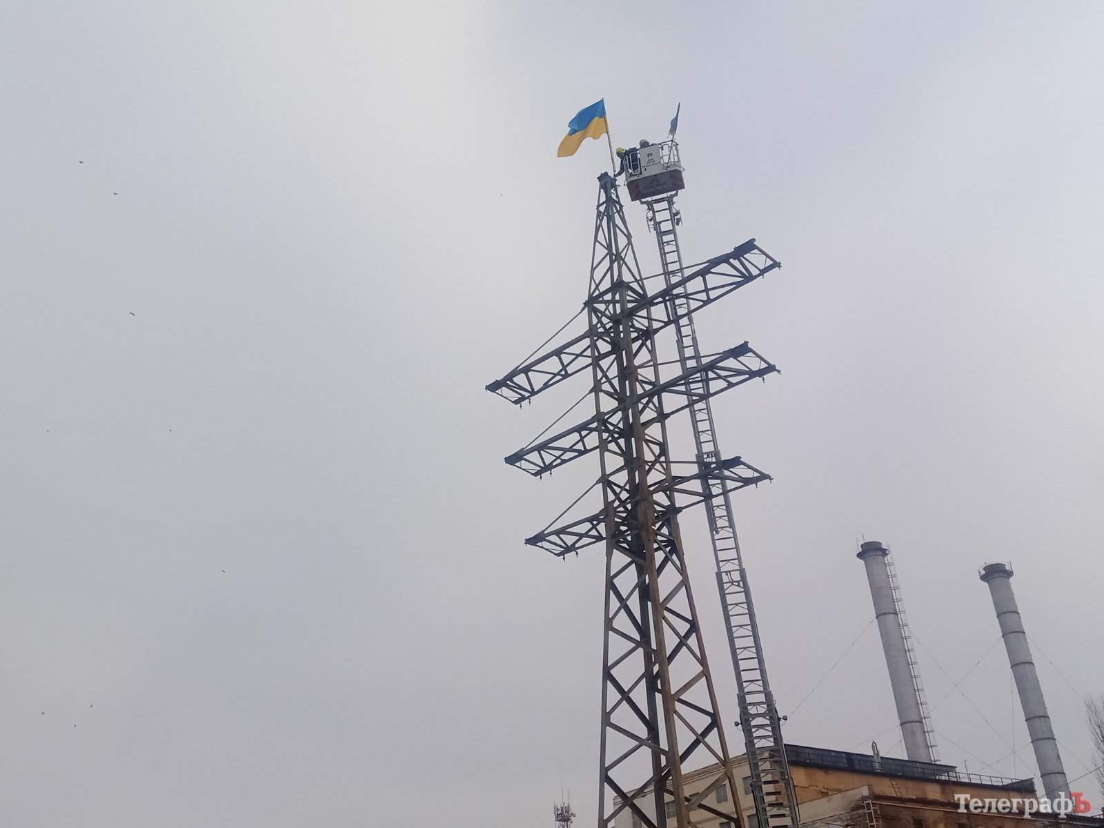 Сьогодні, 3 січня, у Кременчуці працівники Державної служби з надзвичайних ситуацій замінили прапор на електроопорі, що знаходиться в районі електростанції.