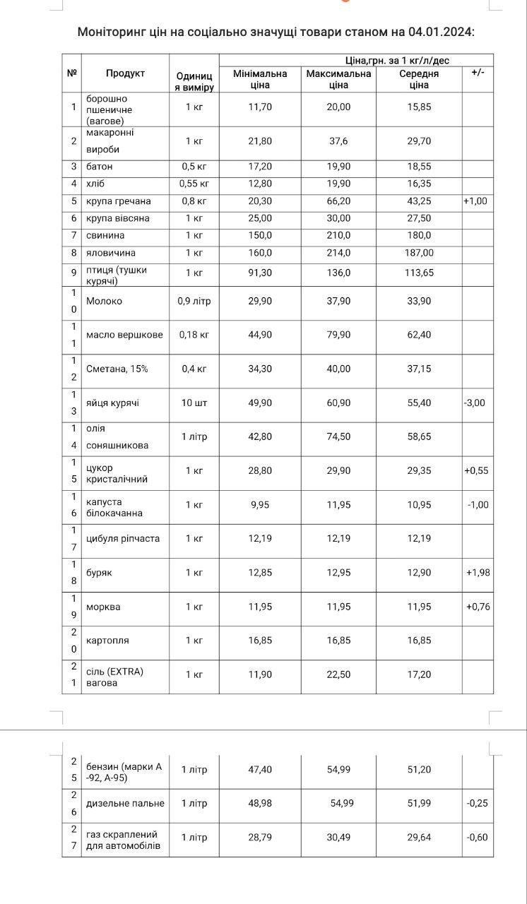 Згідно з моніторингом цін від Держпродспоживслужби станом на 4 січня подорожчали: