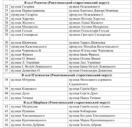 У селі Омельник вулицю Першотравневу, а у селі Запсілля — Пушкіна переназвали на Героїв України.