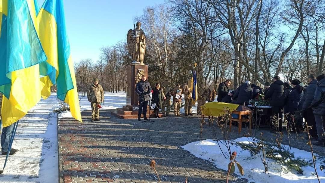 12 січня у Глобиному попрощалися із захисником України. Схилившись на коліно громада попрощалася з військовим Олегом Коцуром.