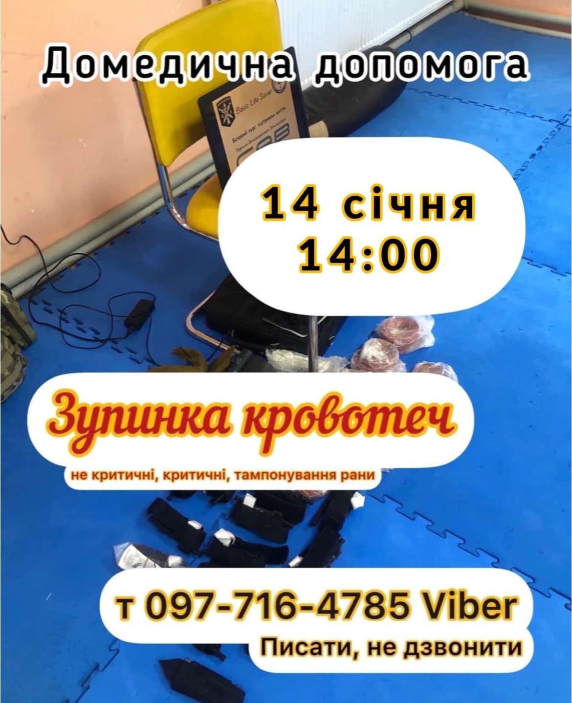 — Тренінг волонтерський! Кількість місць чітко обмежена! Звертаю увагу — місце оголошу лише учасникам після запису на тренінг, але приміщення розташоване в центрі міста, знаходиться на цокольному поверсі та має кілька входів/виходів. Буде теоретична та практична частини. Обов’язково візьміть пару чистих шкарпеток — працюватимемо у спортивному дитячому залі. Хто має час та бажання опанувати нові знання — пишіть мені у Viber за номером (097) 716-47-85, вказуючи: прізвище, ім‘я та номер телефону, — додав Роман Бутрімов.
