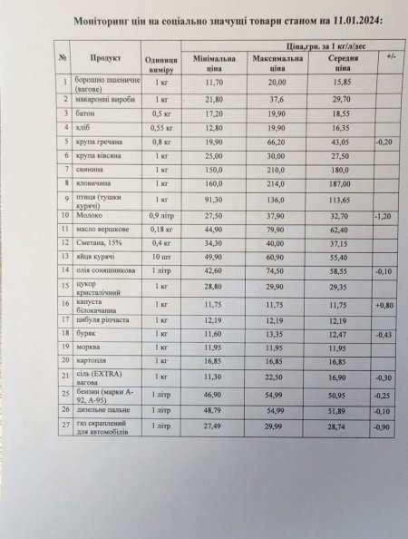 Згідно з моніторингом цін від Держпродспоживслужби станом на 11 січня подорожчали:
