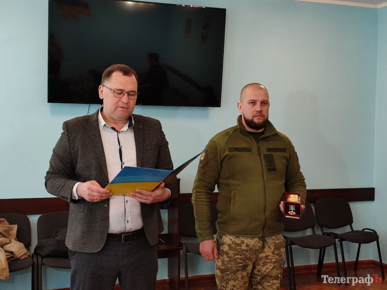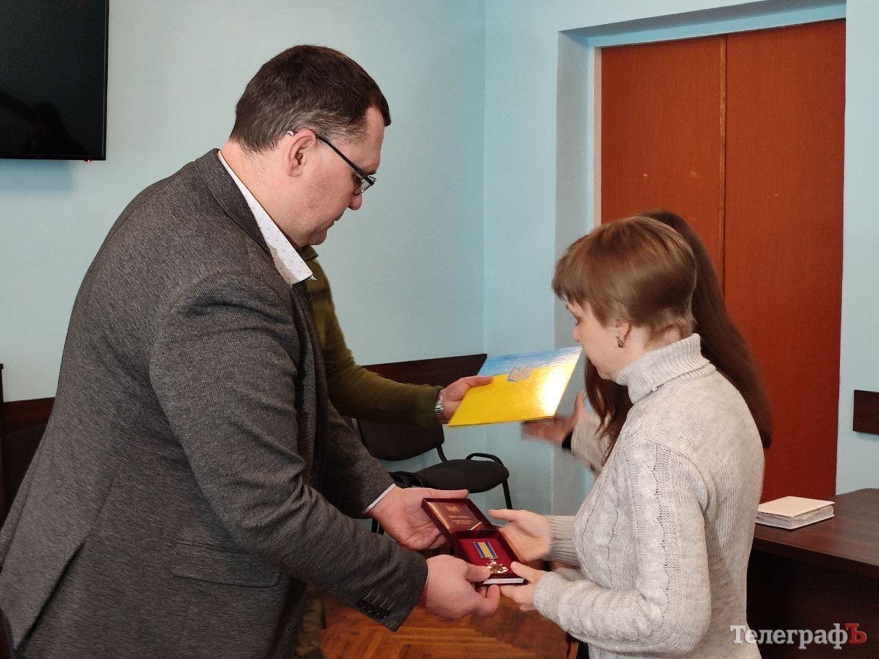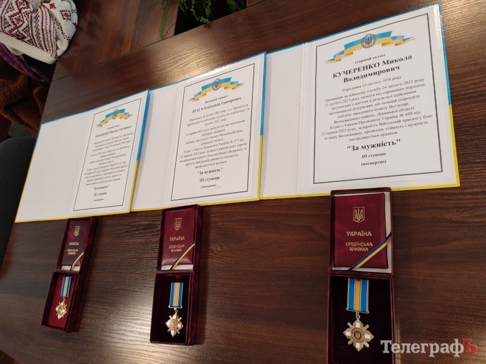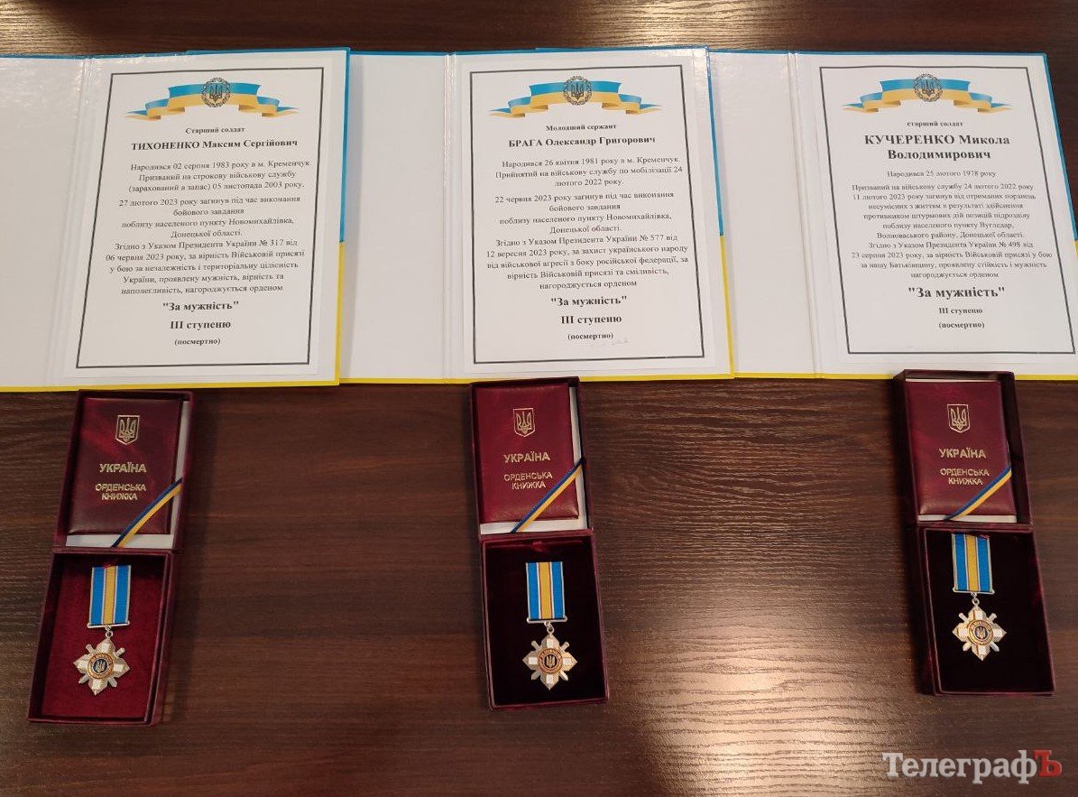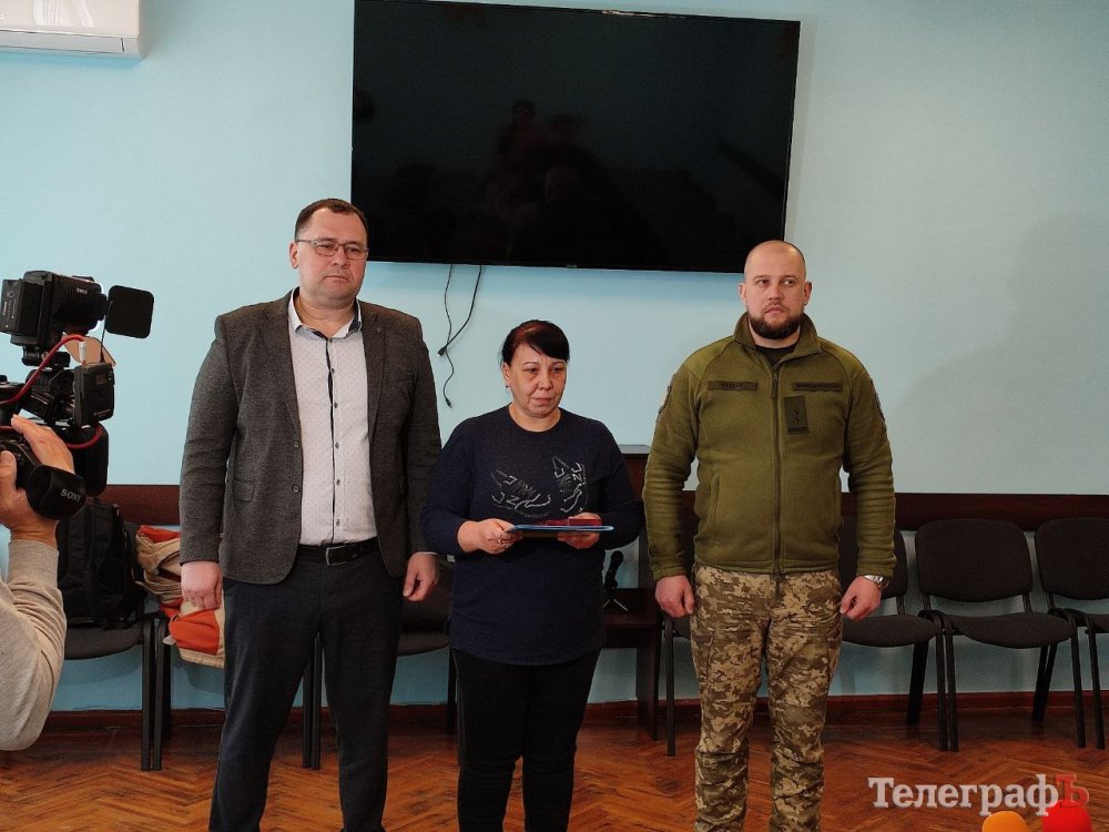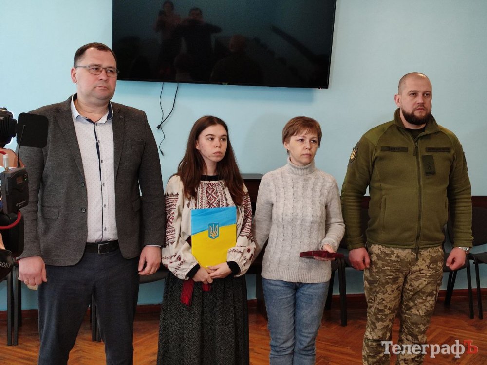 Першим державну нагороду вручили дружині загиблого старшого солдата Максима Сергійовича Тихоненка. Він народився у Кременчуці 2 серпня 1983 року, відслужив строкову службу в ЗСУ.