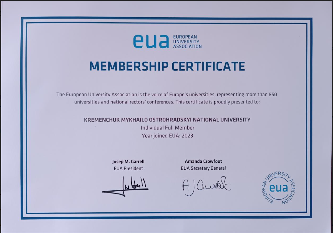 У 2023 році Рада Європейської асоціації університетів ухвалила позитивне рішення та надала КрНУ звання дійсного члена асоціації.