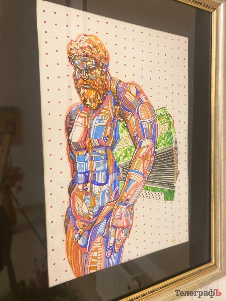 Художниця каже, що живопис під час війни має бути надихати, бути яскравим, адже трагедії достатньо у нас в житті. Згодна з цим твердженням й Інна Мосієнко. Серія її графічних робіт створена маркерами на білому папері. Інна розповідає, що намагалася об’єднати минуле та сучасне, Україну та Стародавній Рим.
