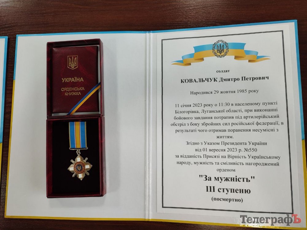 Державну нагороду солдата Дмитра Петровича Ковальчука отримала його мати. Він народився 29 жовтня 1985 року. На військову службу пішов добровільно 4 жовтня 2022 року. Був снайпером розвідувального взводу 81-ї окремої аеромобільної бригади.