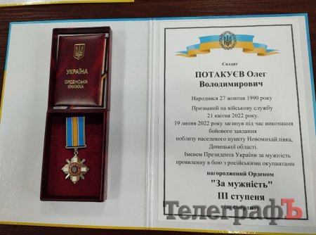 Державну нагороду загиблого солдата Олега Володимировича Потакуєва отримала його матір.