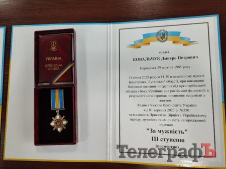 Сьогодні, 26 січня, у Кременчуцькій районній військовій адміністрації вручили нагороди родинам трьох загиблих захисників України.