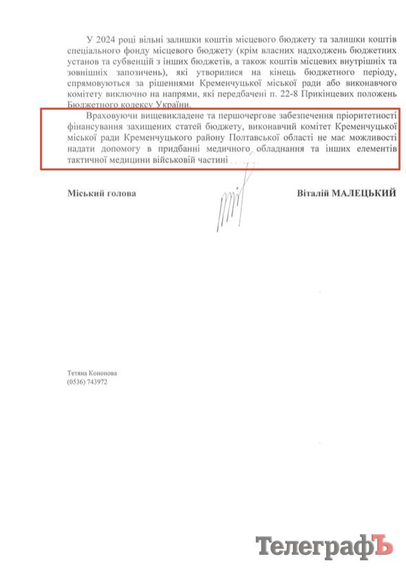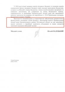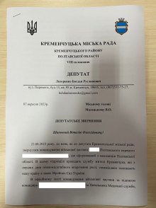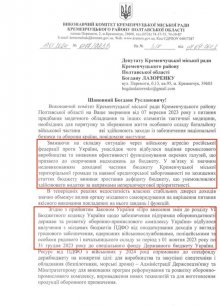 Депутат Кременчуцької міської ради Богдан Лазоренко надав редакції свіжу відповідь на своє звернення, датовану 24-м січня, підписану міським головою Віталієм Малецьким.