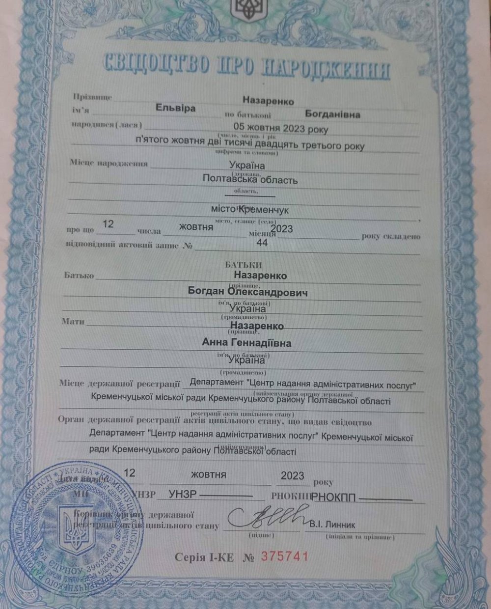 Дочка Анни Ельвіра Назаренко народилася 5 жовтня 2023 року, це були передчасні пологи в терміні 26 тижнів. Дитина має діагноз: прогресуюча гідроцефалія постгеморагічно, вентрикуліт, ретинопатія 1 ступеня.