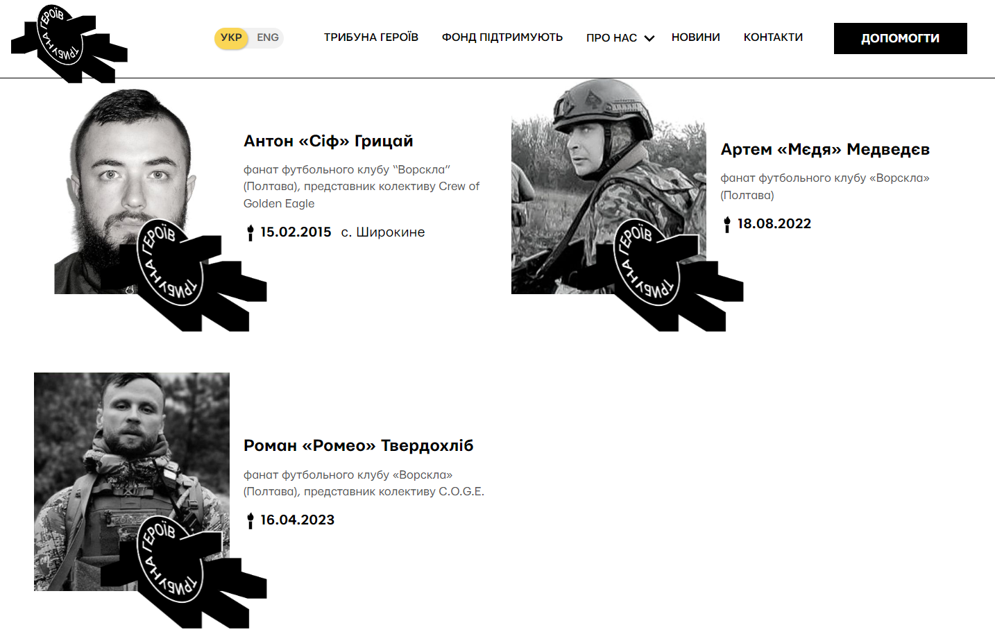 В січні 2024 року команда фонду «Трибуна Героїв», який півтора року допомагає сім?ям загиблих на війні з Росією футбольних фанатів, опублікувала звіт про результати своєї роботи за весь час існування ініціативи. Ініціатива українських ультрас підтримує сім?ї не тільки щомісячними виплатами, але і надає юридичну і психологічну допомогу.