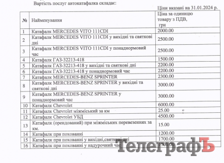 Натомість у спецкомбінаті нам надали актуальну інформацію щодо вартості послуг на перевезення померлих катафалком спецкомбінату.