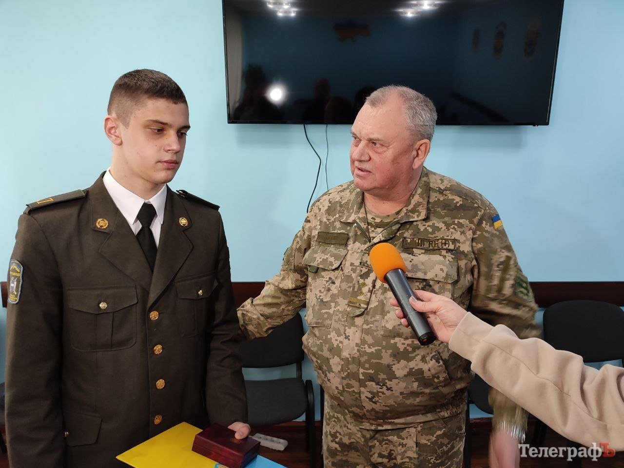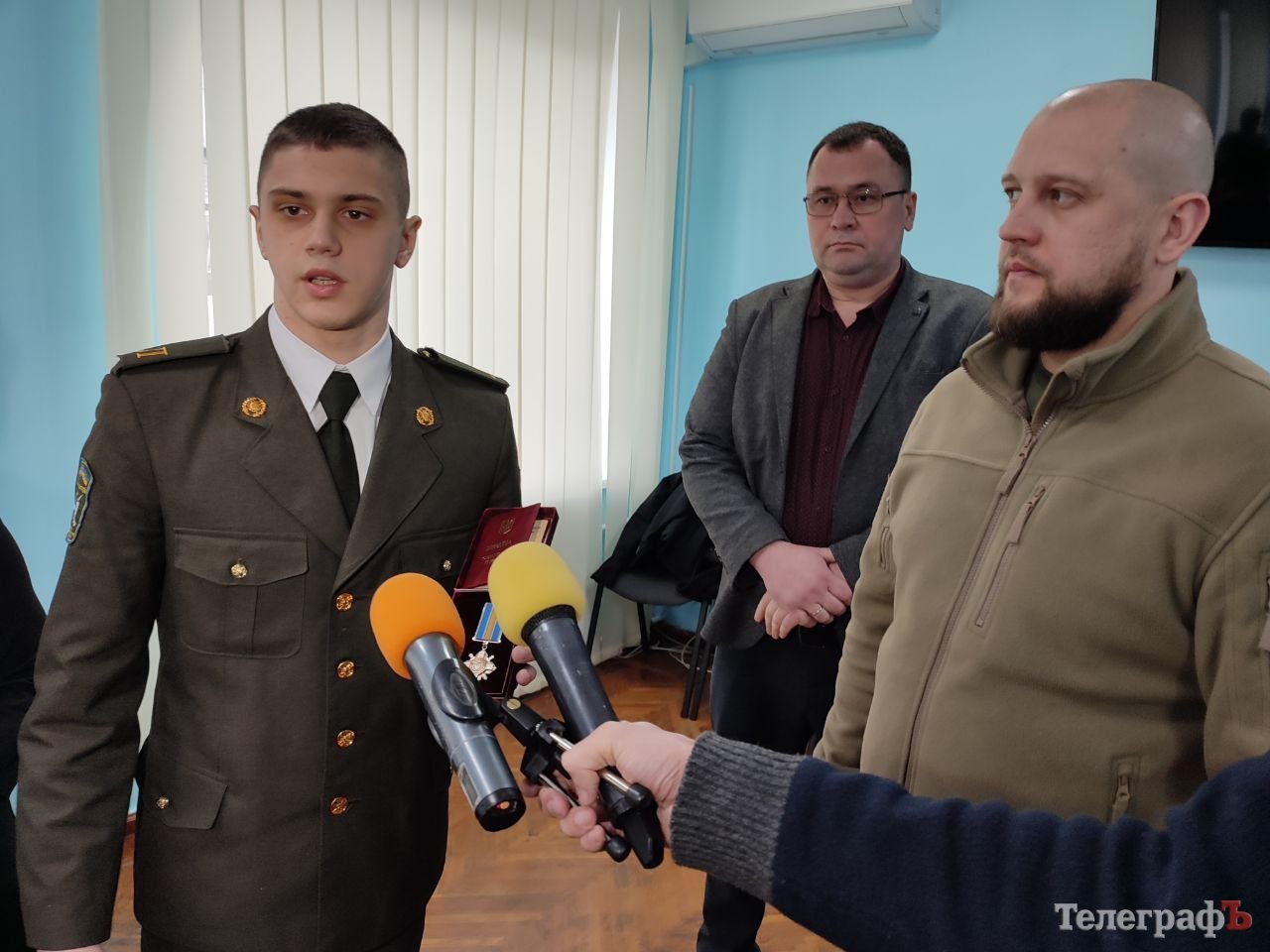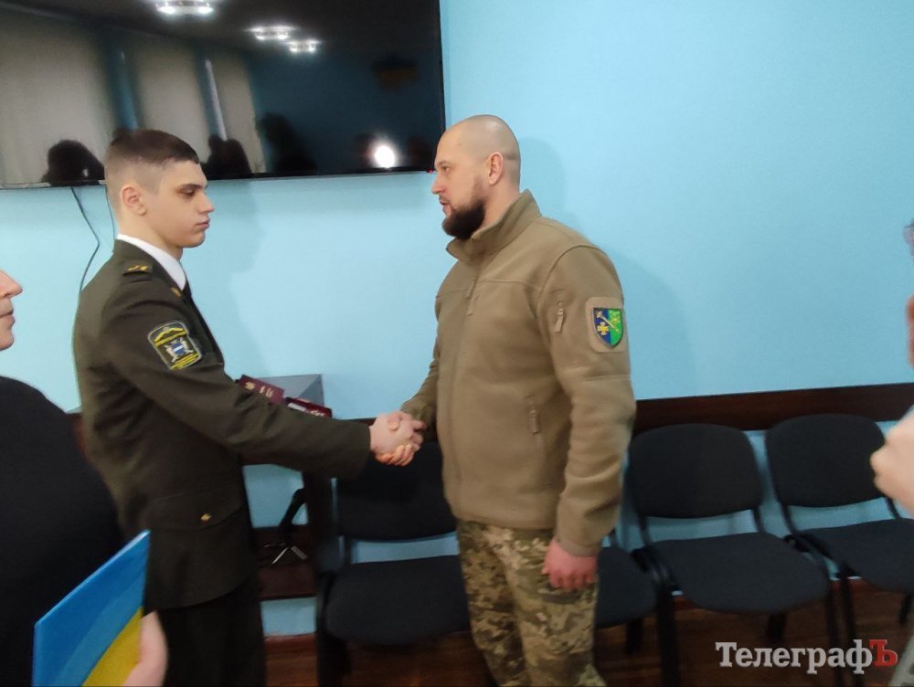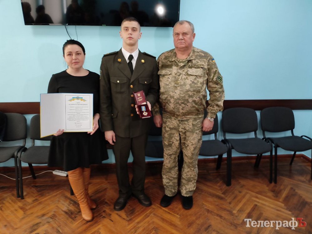 Після вручення нагород син загиблого Сергій Мельничука Богдан Мельничук, який навчається на першому курсі Кременчуцького військового ліцею, розповів журналістам, що пишається батьком і готовий присвятити своє життя захисту України.