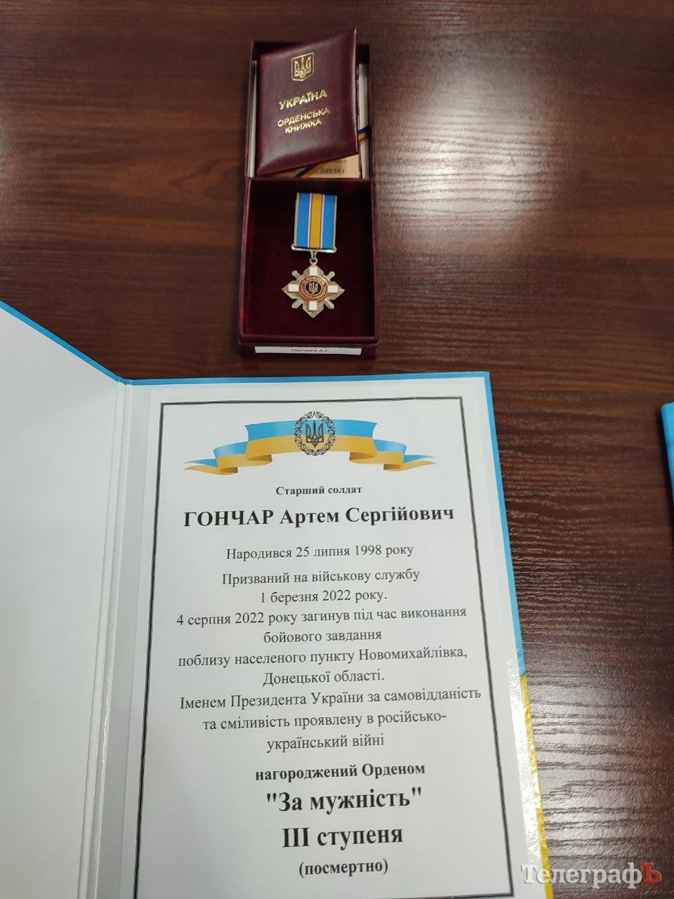 Державну нагороду – орден «За мужність» ІІІ ступеню загиблого старшого солдата Артема Гончара отримала його матір.