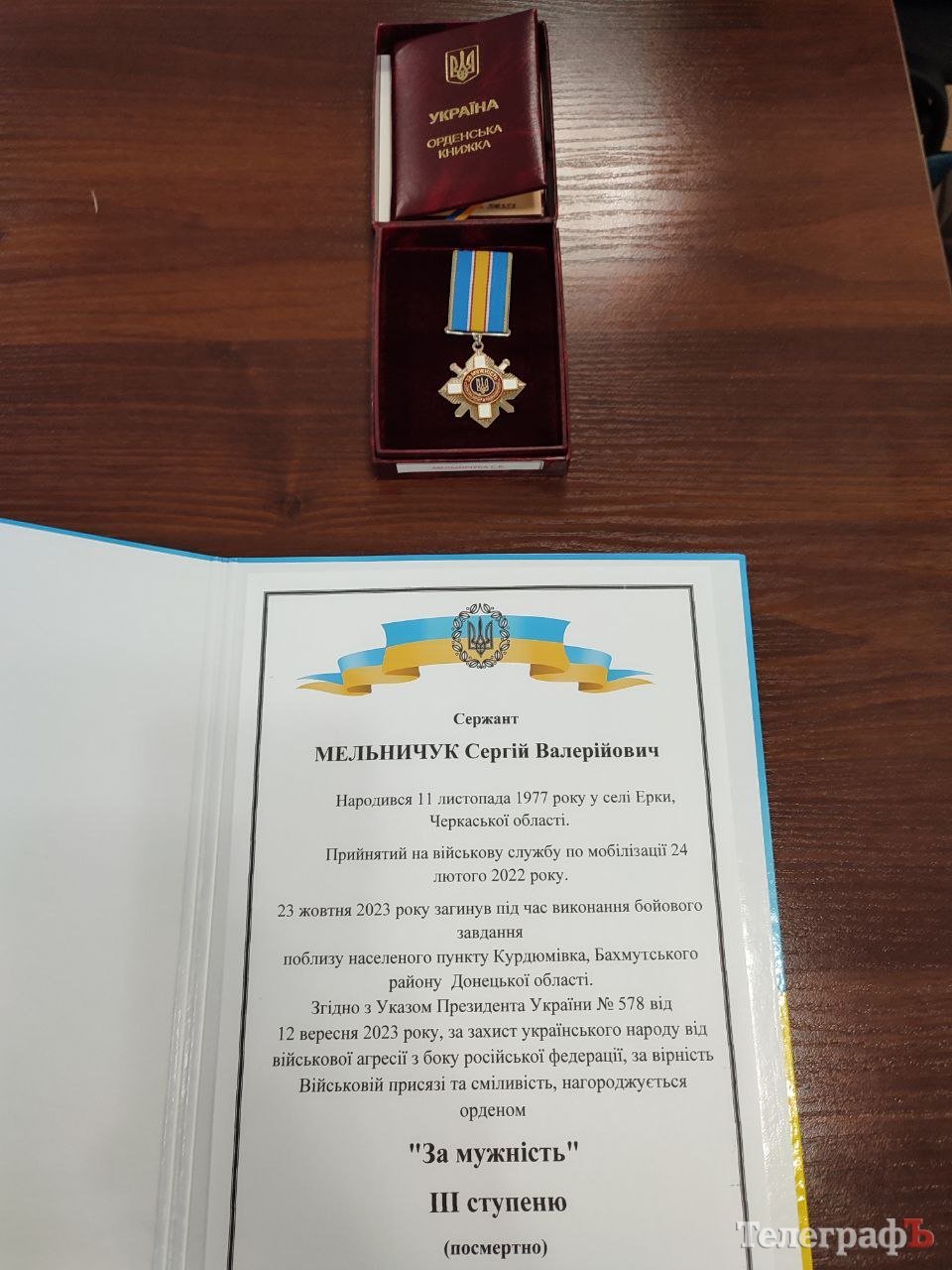 Першими орден «За мужність» ІІІ ступеню отримала родина сержанта Сергія Мельничука – його дружина та син.