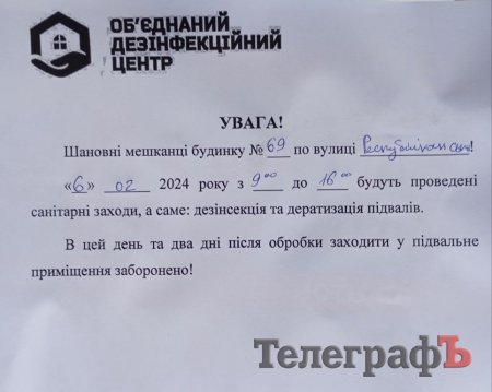 «Кременчуцький ТелеграфЪ» зв'язався з керуючою компанією «Будсервіс», нам порадили писати запит для отримання вичерпної інформації. Однак розповіли, що в цьому будинку проводили планові заходи за зверненням мешканців однієї з квартир на першому поверсі.