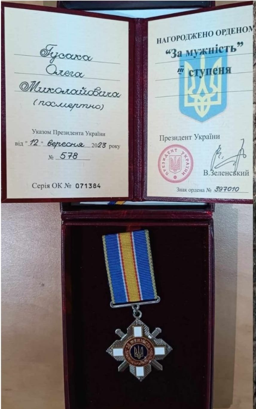 8 лютого рідним загиблого військовослужбовця із Козельщини Олега Гусака вручили орден «За мужність» III ступеня (посмертно). Про це повідомляють на фейсбук-сторінці Четвертого відділу Кременчуцького районного територіального центру комплектування та соціальної підтримки.