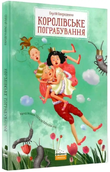 Сергій Свириденко «Королівське пограбування»Це смішнюча повість-казка сподобається як хлопчикам, так і дівчаткам. Та й батьки знайдуть в ній багато дорослої мудрості. Принцеса Нікусяка, гуляючи в королівському саду випадково наступила на ногу стоніжці. І тепер розлючена стоніжка вимагає за це компенсацію – «сто тисяч мільйонів». Але грошей у королівстві немає, а легковажний король ліпить із боргового листа паперовий літачок і запускає його у вікно палацу. І тоді стоніжки захоплюють у полон принца і двох принцес – і починається весела катавасія |