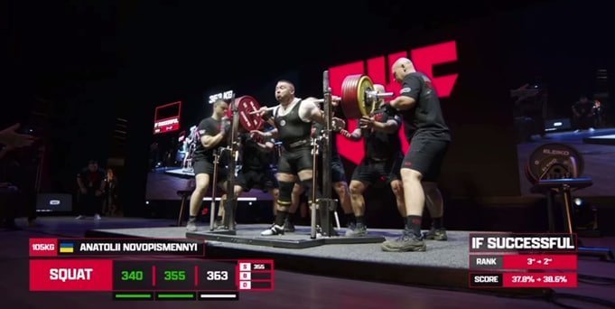 У присіданні Анатолій підняв вагу, вищу світового рекорду — 363 кілограмів.