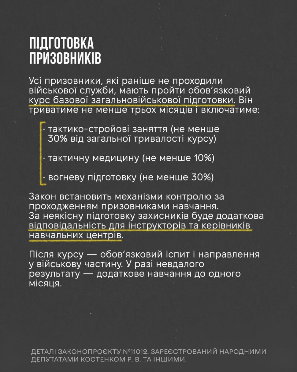 Окрім того, пропонується визначити норми щодо демобілізації: військові зможуть звільнитися після 36 місяців безперервної служби або через 18 місяців служби, з яких 12 виконували бойові завдання.