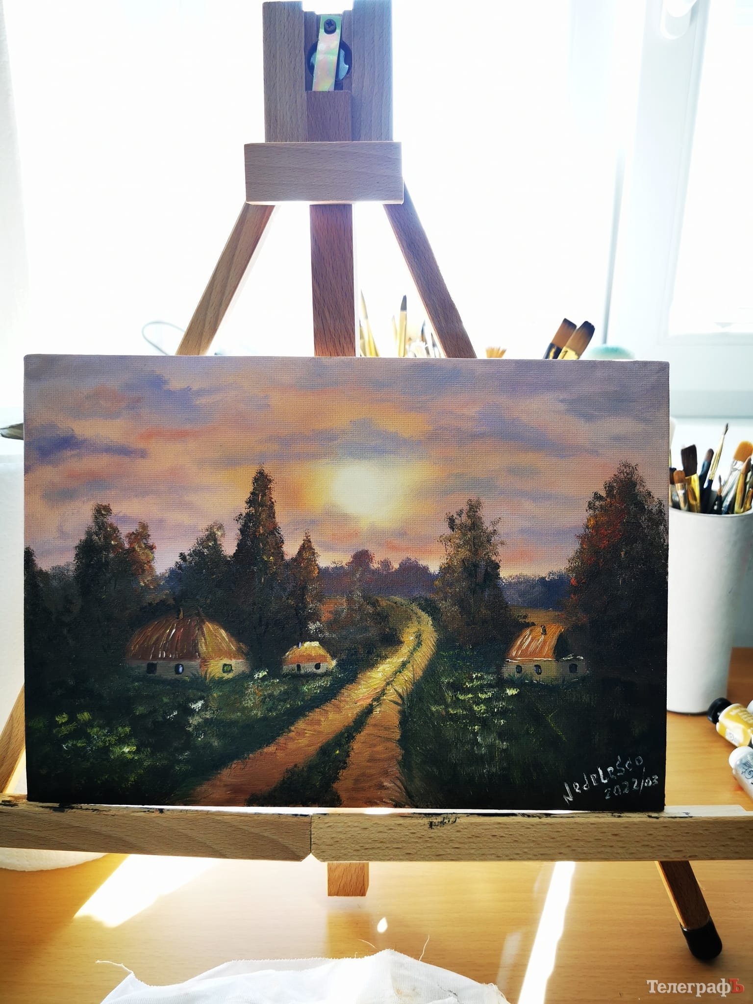 На першому полотні вона написала весняну Чехію. Друга картина стала тим, що відображала її душа — полтавська старенька хатинка в променях сонця… Обидві картини виклала на своїй сторінці у Фейсбуці, а також в тематичній групі, яка об’єднувала українських біженців, з пропозицією купити за будь-які гроші.
