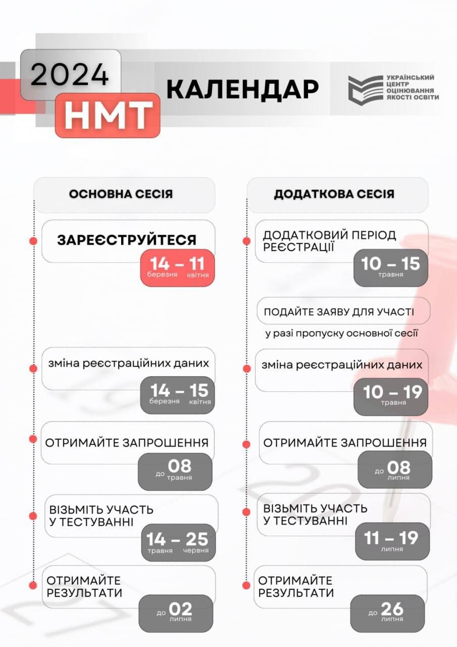 8 травня та 8 липня учасники основної та додаткової сесій відповідно отримають запрошення, де дізнаються про місце, дату та час проведення тестування.