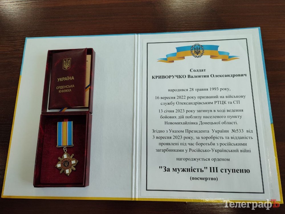 Першим державну нагороду — орден «За мужність» ІІІ ступеня — вручили дружині загиблого солдата Криворучка Валентина Олександровича.