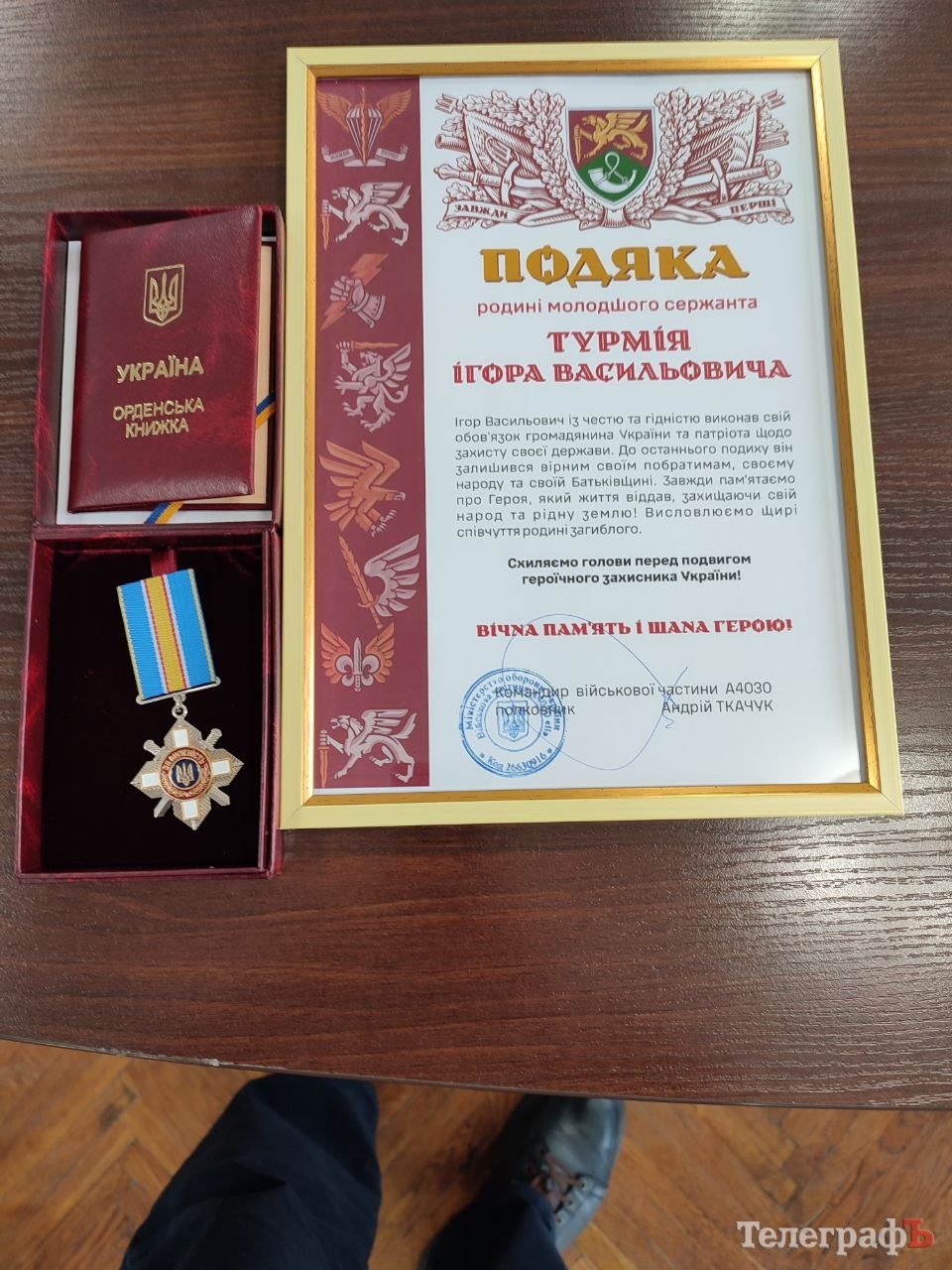 Нагороду молодшого сержанта Турмія Ігоря Васильовича — орден «За мужність» ІІІ ступеня — отримали родина полеглого Героя. Їм також передали Подяку від командира військової частини, де служив Ігор.